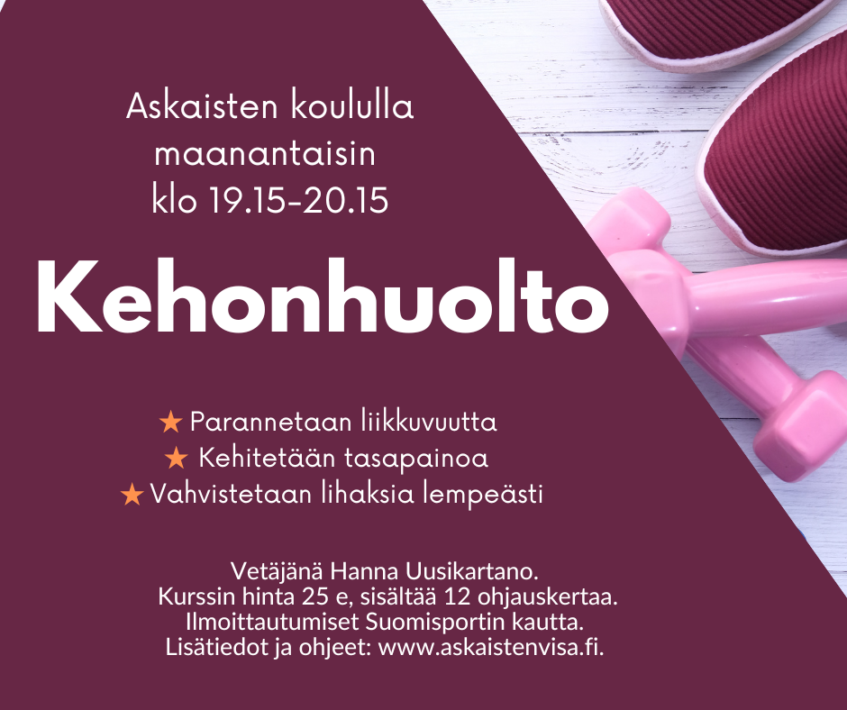 Kurssi pidetään maanantaisin 12.1.2026 alkaen Askaisten koululla (Askaistentie 700).
